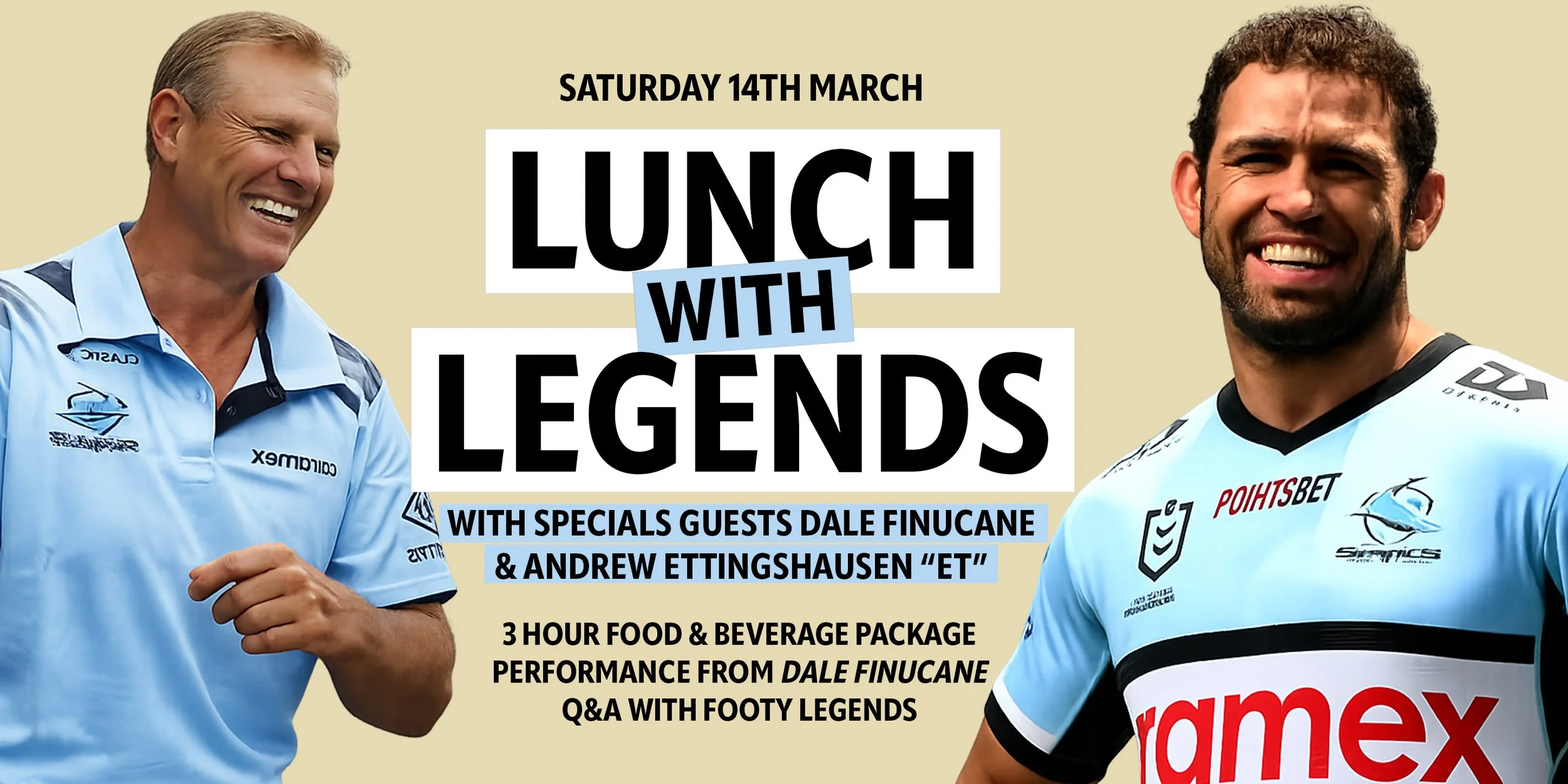 Donβt miss this unforgettable afternoon with two of rugby leagueβs most iconic personalities!